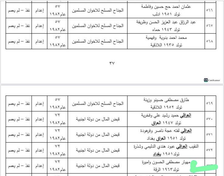 “经过40年的寻找和无数次贿赂未果后,我们终于发现了我叔叔的命运。1982年,他被阿萨德政权以“收受境外势力的金钱”的罪名处决。几十年来,我们不知道他被残酷处决的原因和具体日期。”