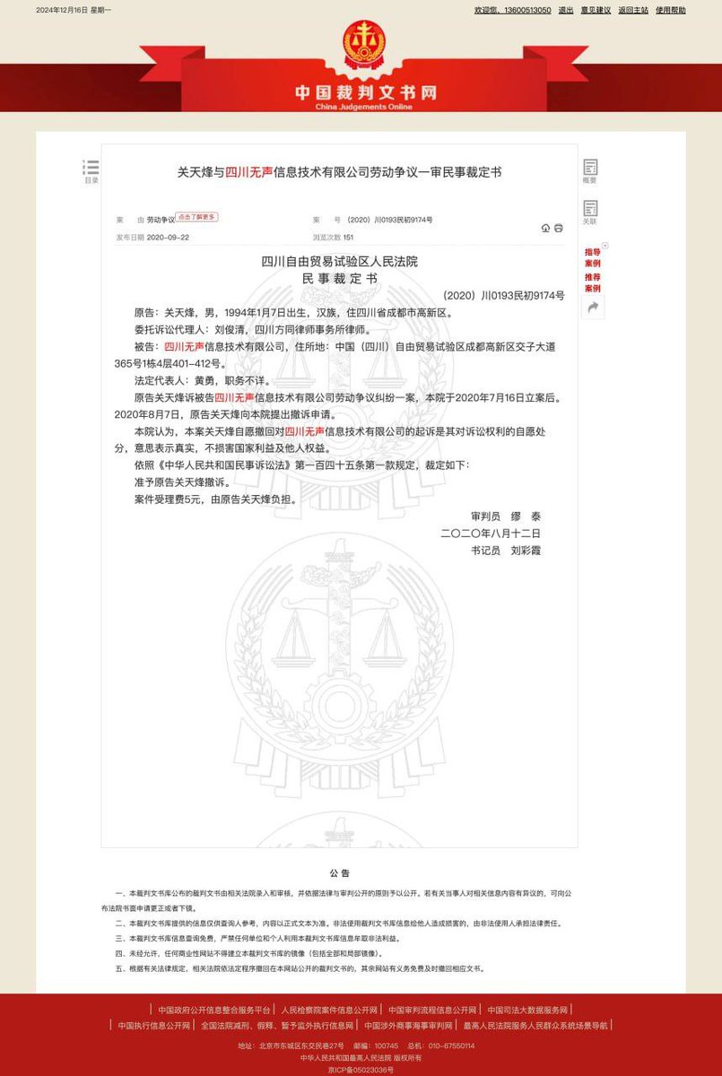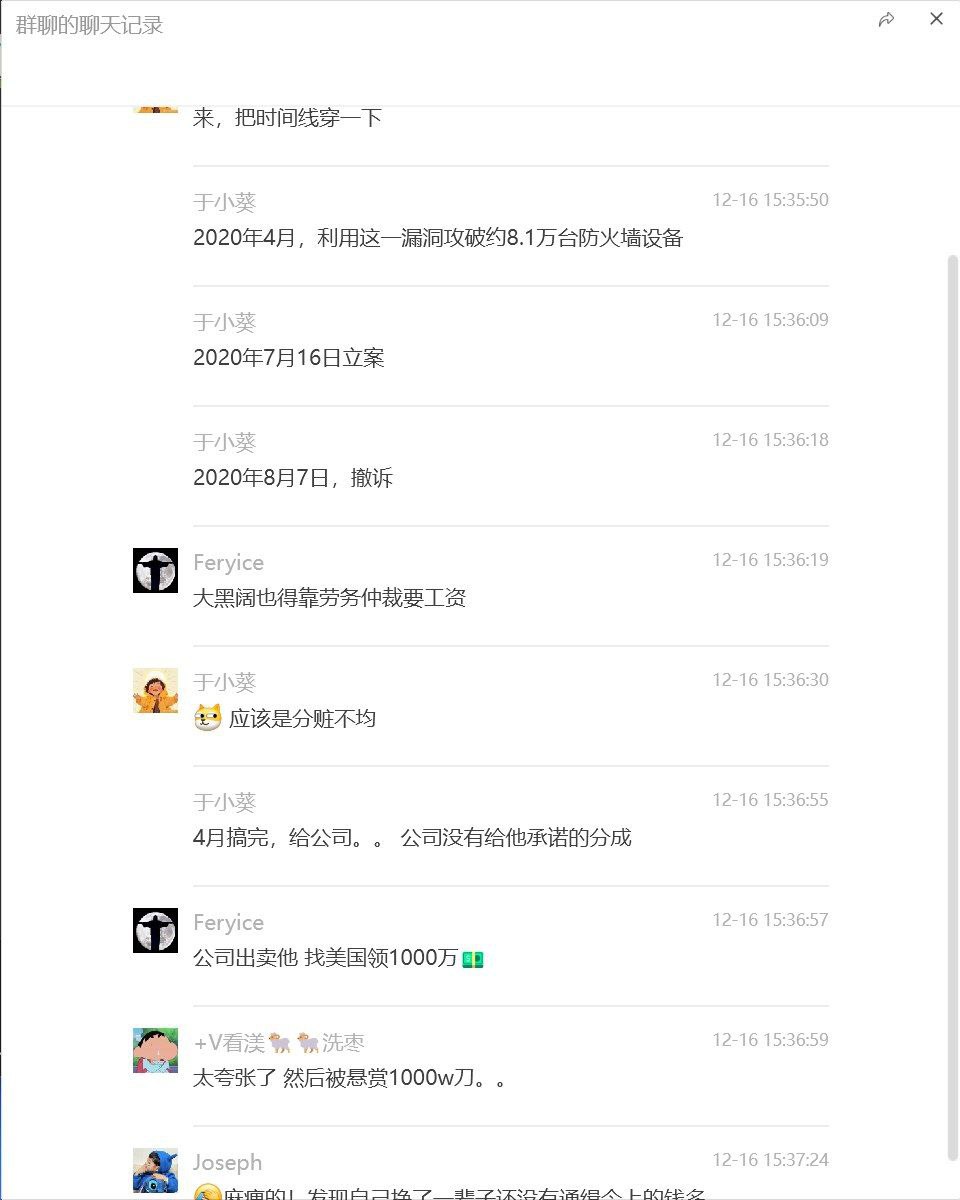有网友发现:中国黑客关天峰于2020年批量攻击了防火墙设备之后,疑似以“劳动争议”为由起诉了自己的公司,可能是因为没拿到足够的工资。后来他还“自愿撤诉”了。干了一辈子,赚的还没自己在悬赏令上的钱多。