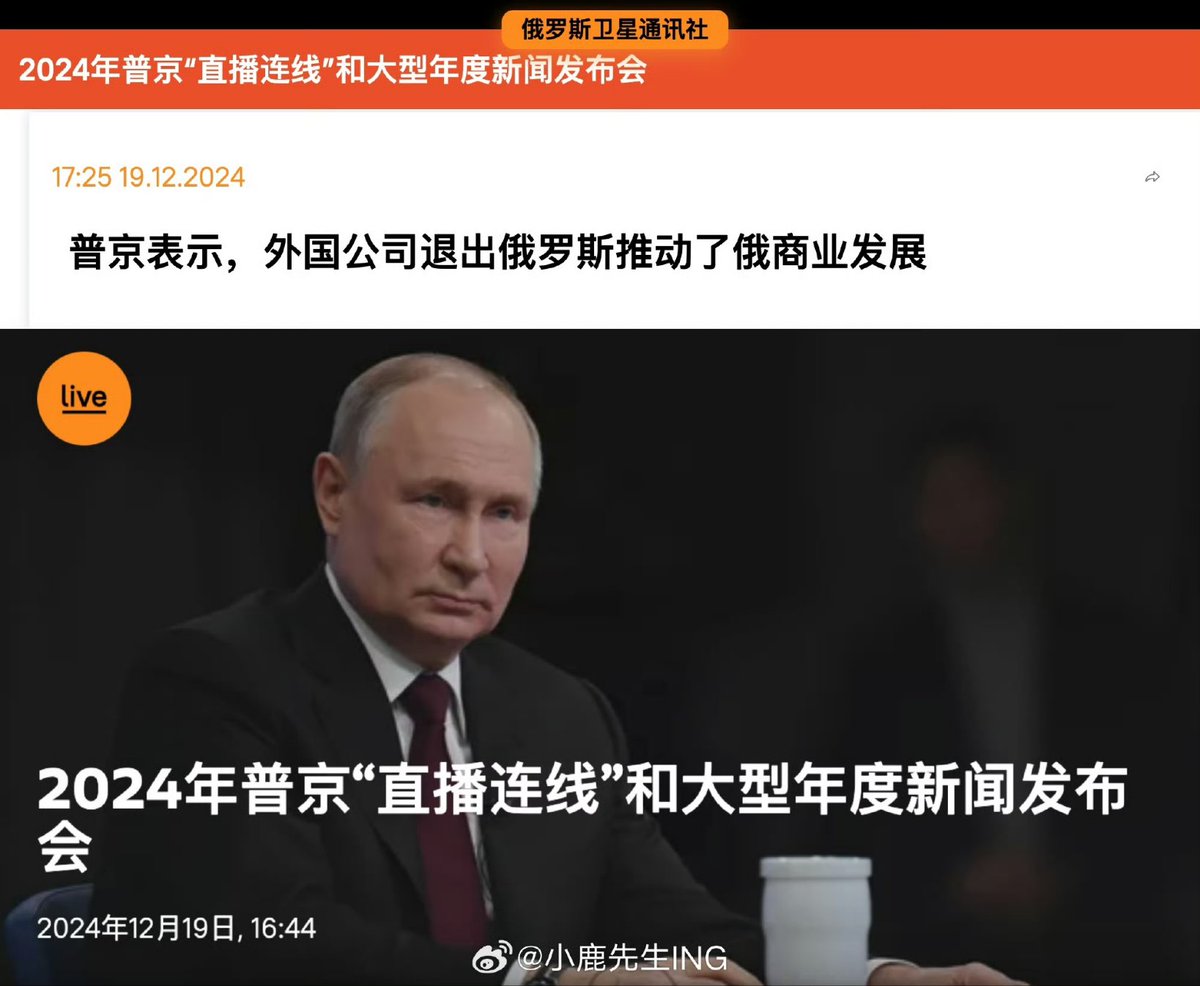 普京说:外国公司退出俄罗斯推动了俄商业发展。