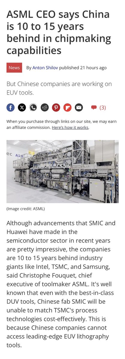 我记得前几个月彭博社说中国距离先进芯片只差3-5年时间,ASML现在说中国还落后10-15年。关键是中国在爬行的同时,西方在飞跃,追不追得上是要看不出别的意外。2010年代前后西方国家吹嘘中国崛起吹得过火,连中国的宣传机器看了都引以为知己,以至于说得中国人都陷进去了,现在来看当时的乐观主义就是南柯一梦。