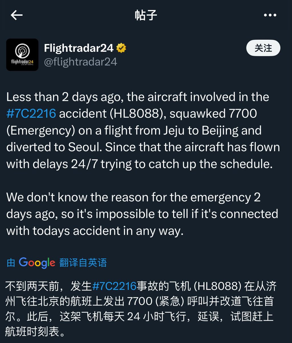 今天韩国空难的飞机两天前执行了飞北京的任务,为了救一个得病的中国人而紧急迫降,延误了他们的行程,于是他们不停地飞,赶进度。悲惨的是,今天发生了韩国🇰🇷史上最惨烈的空难。