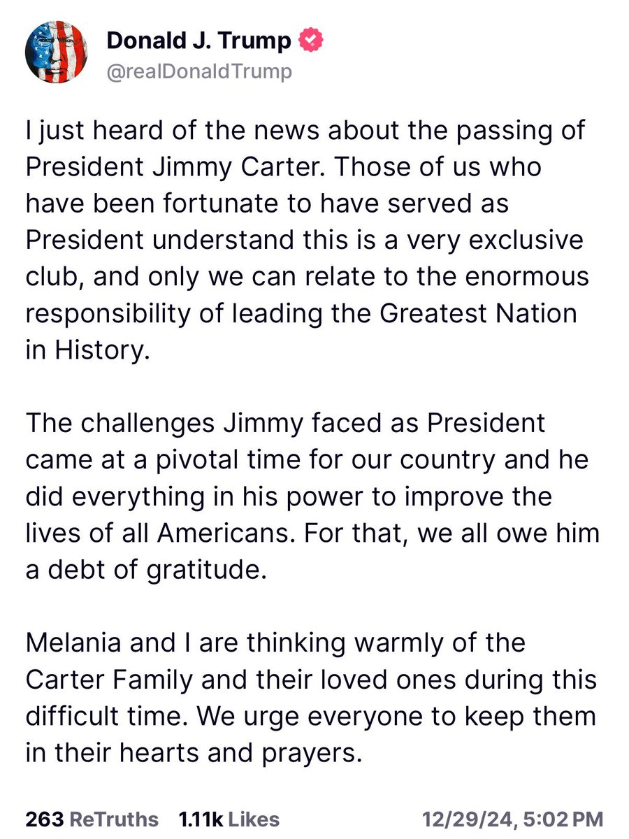 BREAKING: Trump's statement on the passing of Jimmy Carter
