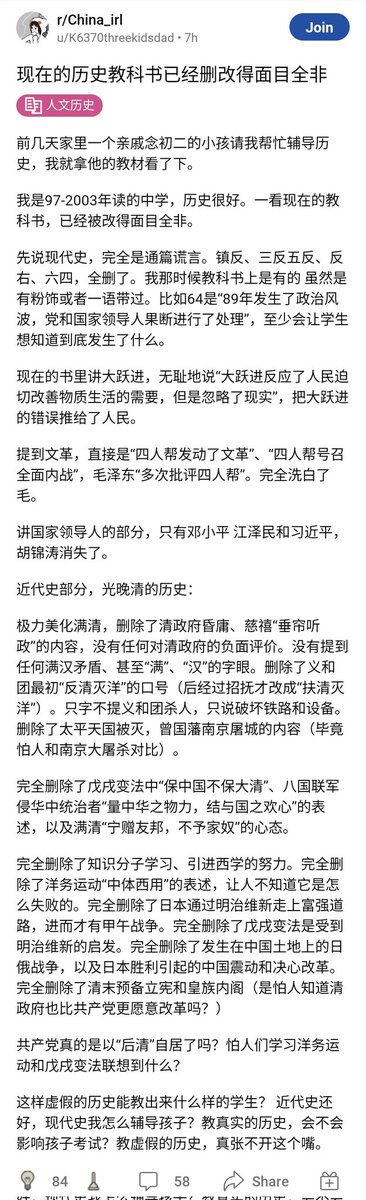 网友分享:现在国内的历史教科书已经删改得面目全非。
