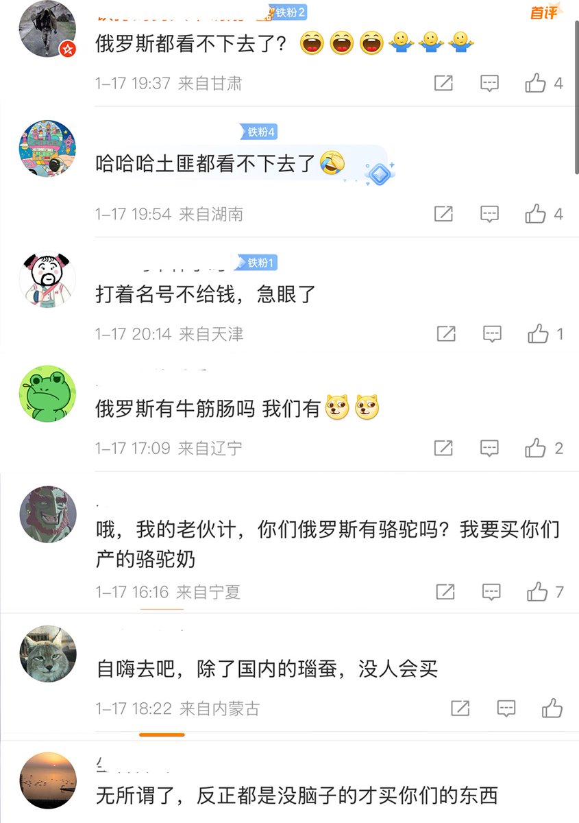 1月17日,俄罗斯驻华大使馆:我们遗憾地注意到,一些商店打着俄罗斯产品的幌子销售假冒产品或非我国生产的产品。