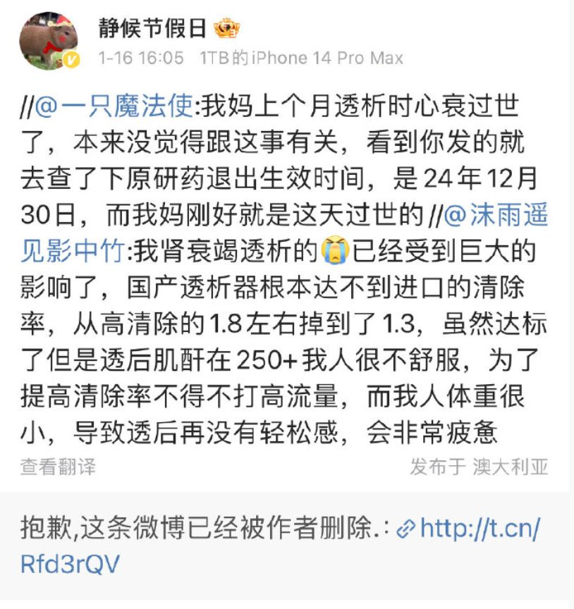 集采之对肾衰和透析医疗器材药物的抱怨。