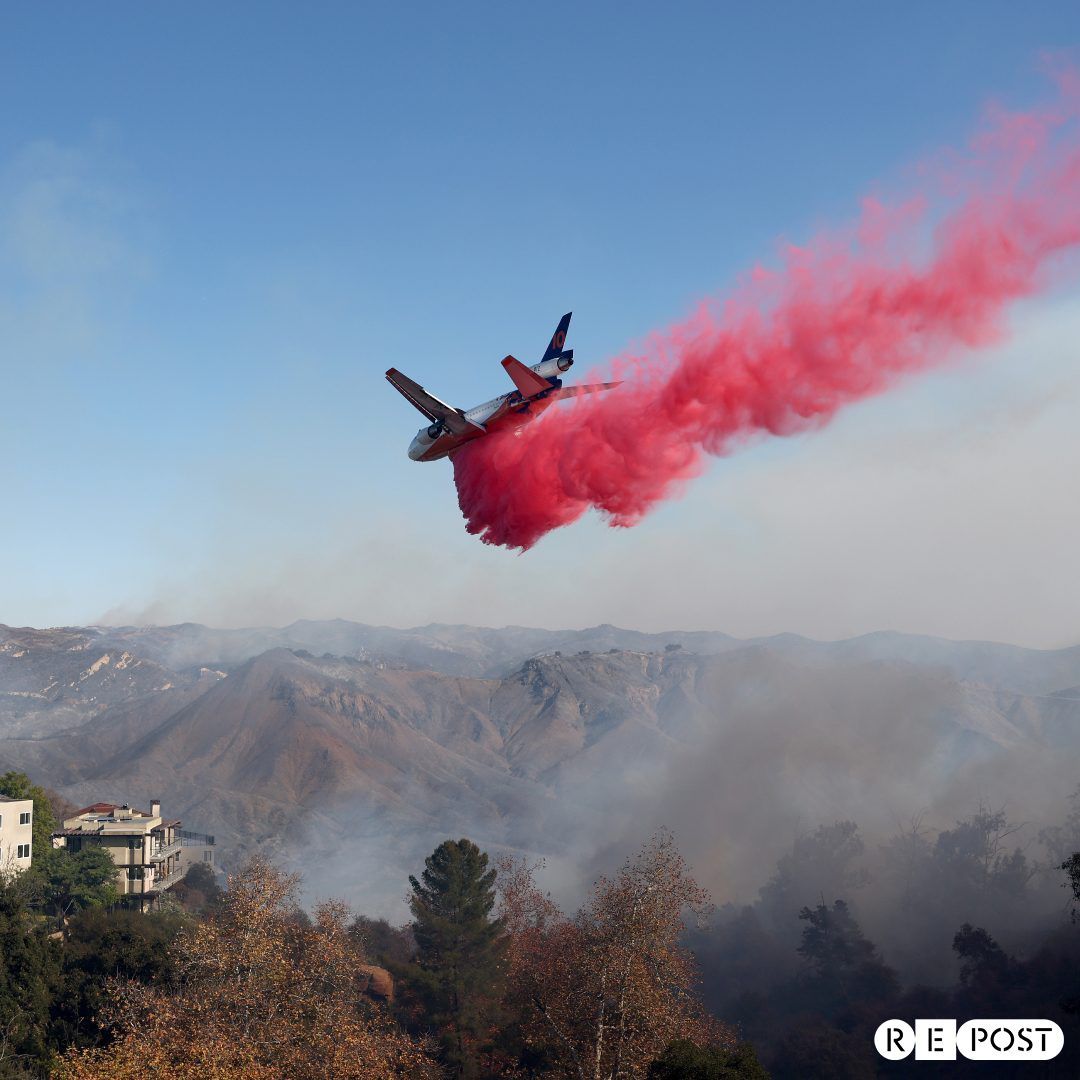 Surreal pictures of LA suburbs covered in pink fire suppressant