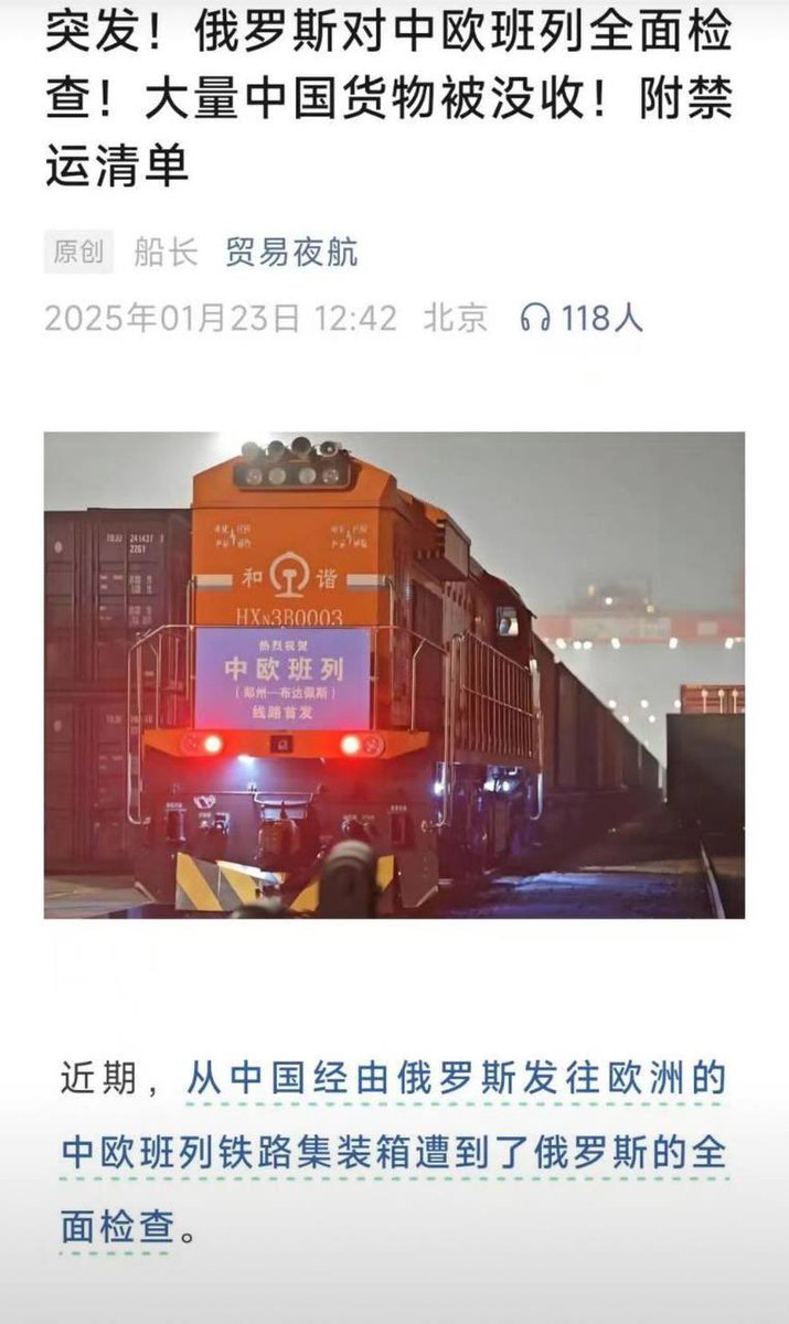 俄罗斯近期突击检查中欧班列,没收了大量中国货物。之前俄国扣押了22架中国民航客机,其中中银航空被扣17架,俄罗斯贱价赔偿后,中银航空被迫自愿和解,但这些飞机至今下落不明(有小道消息说有三架飞机归还,但没有可靠渠道证实)。2024年3月《华尔街日报》称俄国扣押了超过400架各国民航客机。