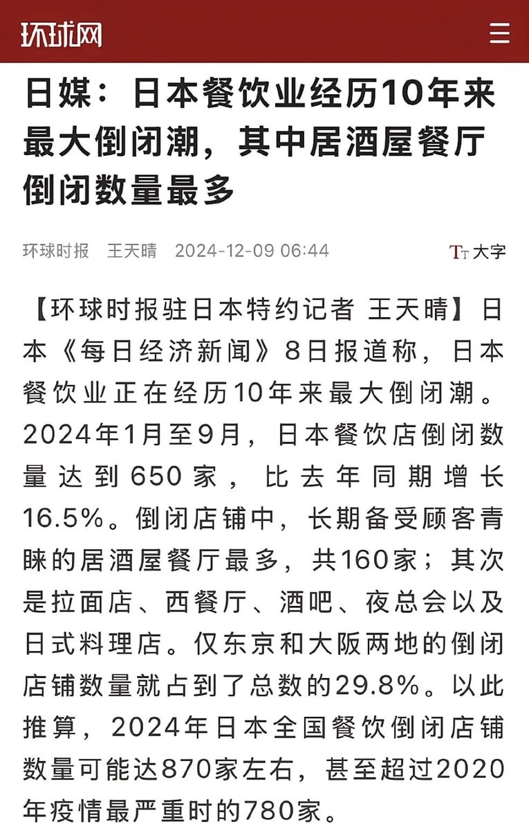 2024年中国近300万家餐饮店倒闭,日本870家餐饮店倒闭,他们都创了历史的新高。