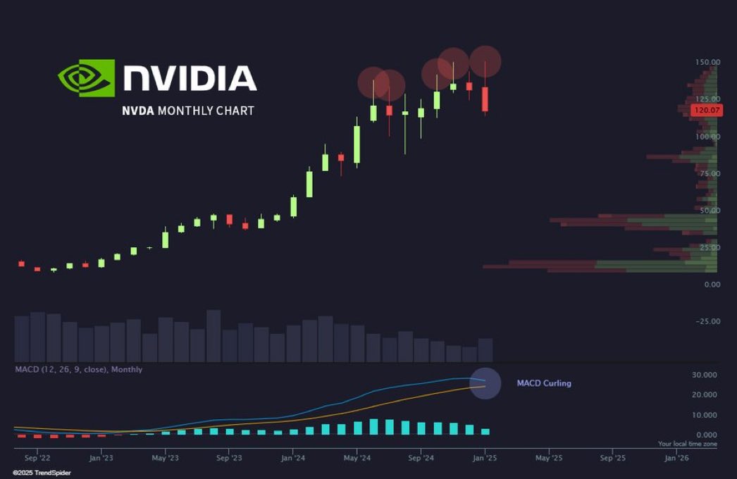 不知不觉,原来英伟达已经8个月横盘了,其中5个月出现了严重的上影线其中以25年1月的跌幅最大这不是顶部,什么是顶部?谢谢赐教!