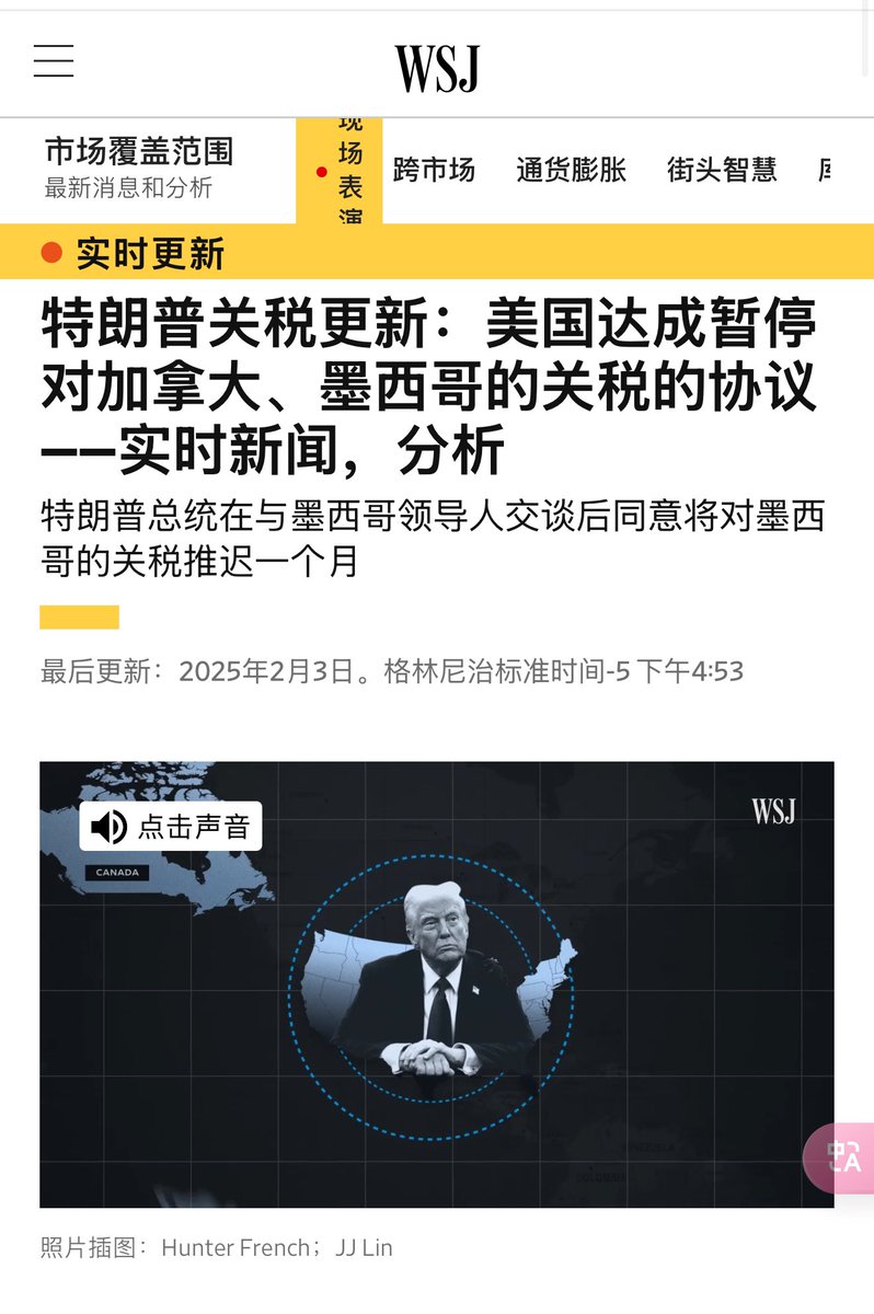 在谈判之后,加拿大和墨西哥的关税全部暂停