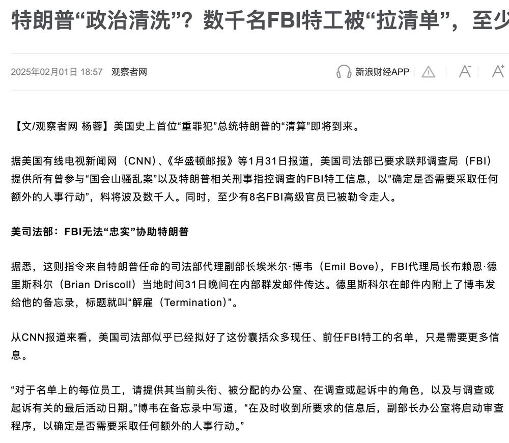 特朗普对追究国会山事件和调查机密文件案的报复,清洗FBI以及涉及此事的检察官群体。