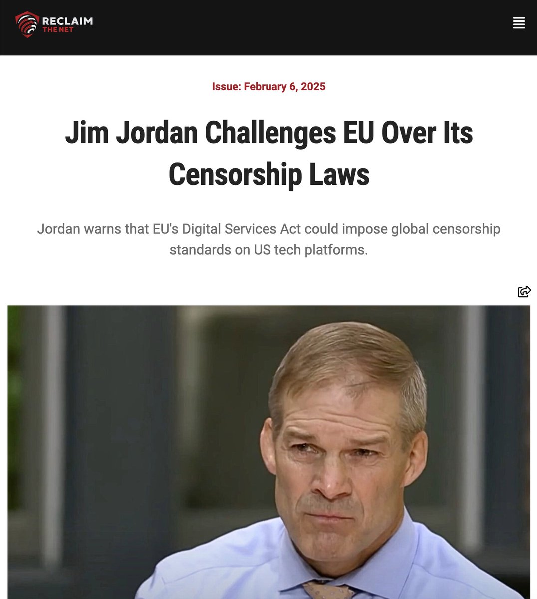 Jim Jordan is taking the EU to task over its censorship-heavy Digital Services Act (DSA). In a letter to the EU Commission, he demands answers on how this law will impact US tech companies — especially ongoing investigations into Meta and X.