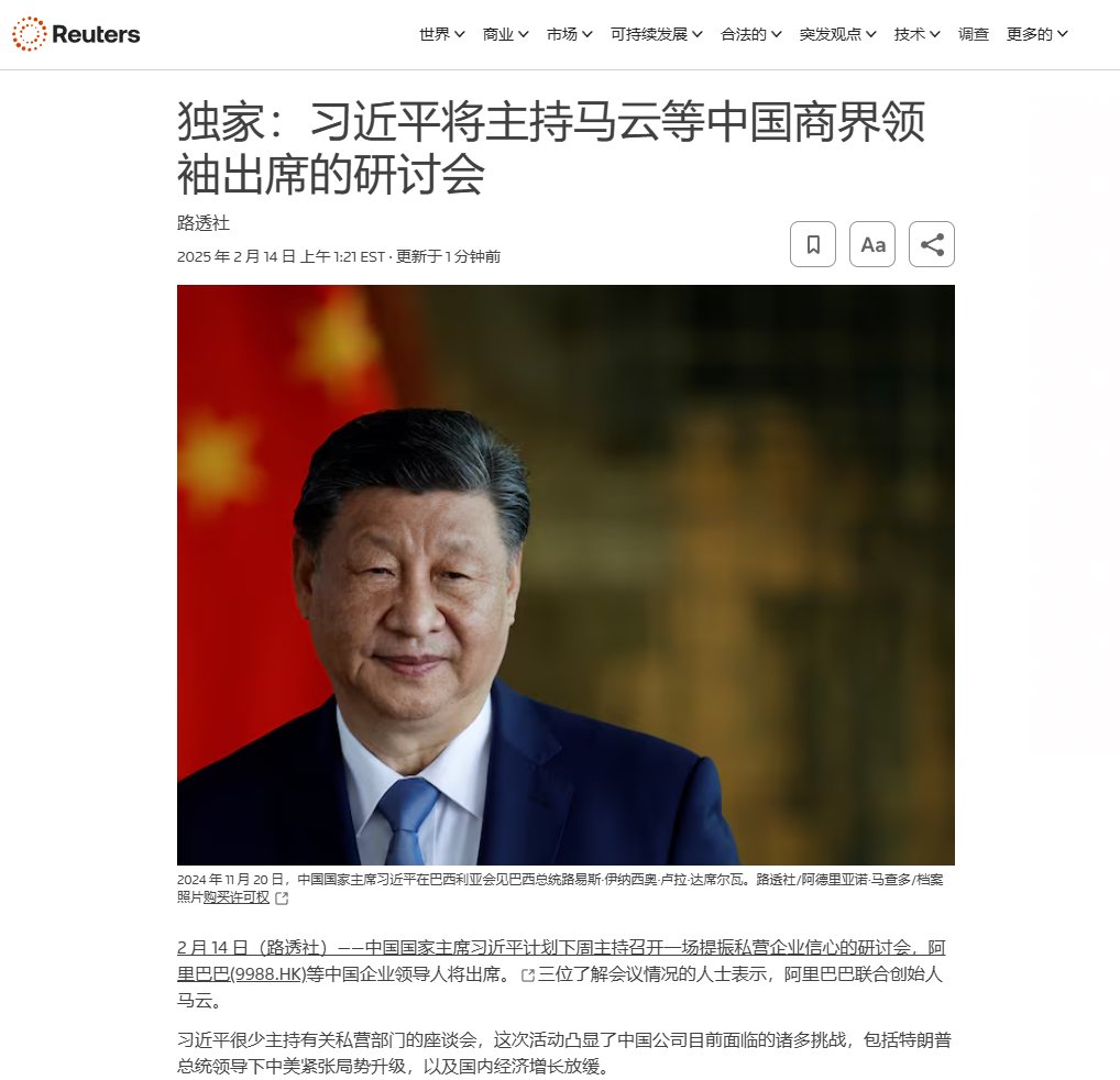 路透社消息 习近平为了应对川普潜在的贸易战2.0 将与下周召开企业家会议,预计马云,马化腾,雷军,都将出席会议 马云能出席,可以说终于算是逃过一劫了 当然这种情况其实也是可以预料的,就如我之前视频里说到的一样 前两年经济发展局势比较好,外部压力比较小,这给了习近平打击企业家的信心和空间 但是伴随着经济压力变大,外部压力变大,习近平一定会开始像企业家示好,让渡一些权力 对于习近平来说,企业家或许是分享他权力的敌人,但是最大的敌人还是经济下行,以及经济下行可能产生的民变