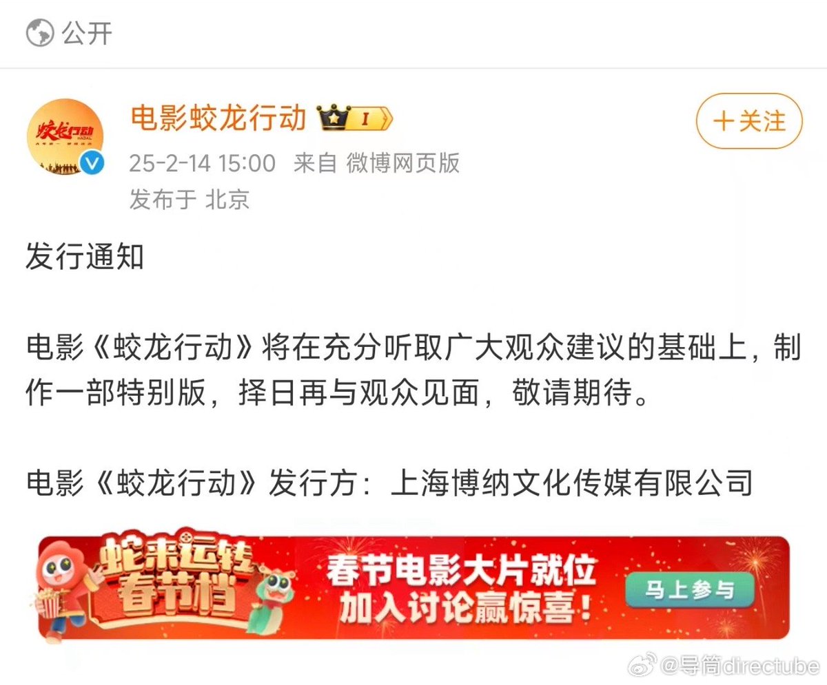 爱国主旋律电影《蛟龙行动》上映17天票房仅3.78亿。 电影发行方:《蛟龙行动》撤档,并在充分听取广大观众建议的基础上,制作一部特别版,择日再选择与观众见面,敬请期待。