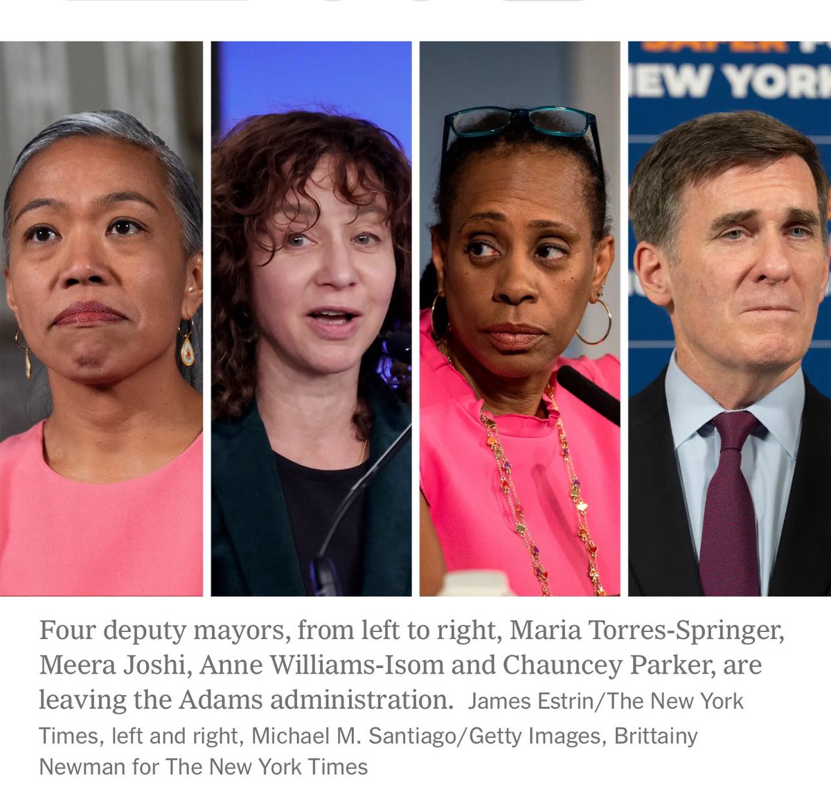 纽约市的四位副市长纷纷辞职 第一副市长、卫生人事副市长、运作副市长、公共安全副市长。 这是美国第一大的城市,纽约大都市地区近两千万人口,美国有六个州不到一百万人口。 美国单口相声笑星说,这两天纽约市由老鼠全面接管。 人应该记住这些人,他们不是一点权、一点钱就可以收买的。 与川普身边的人,形成鲜明的对比 - 他们谁都不“舔”,尊重的是制度和法治。