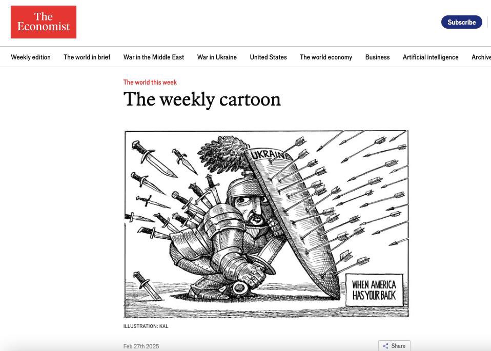 “當美國支持你時”:《經濟學人》以最新消息為背景的漫畫。