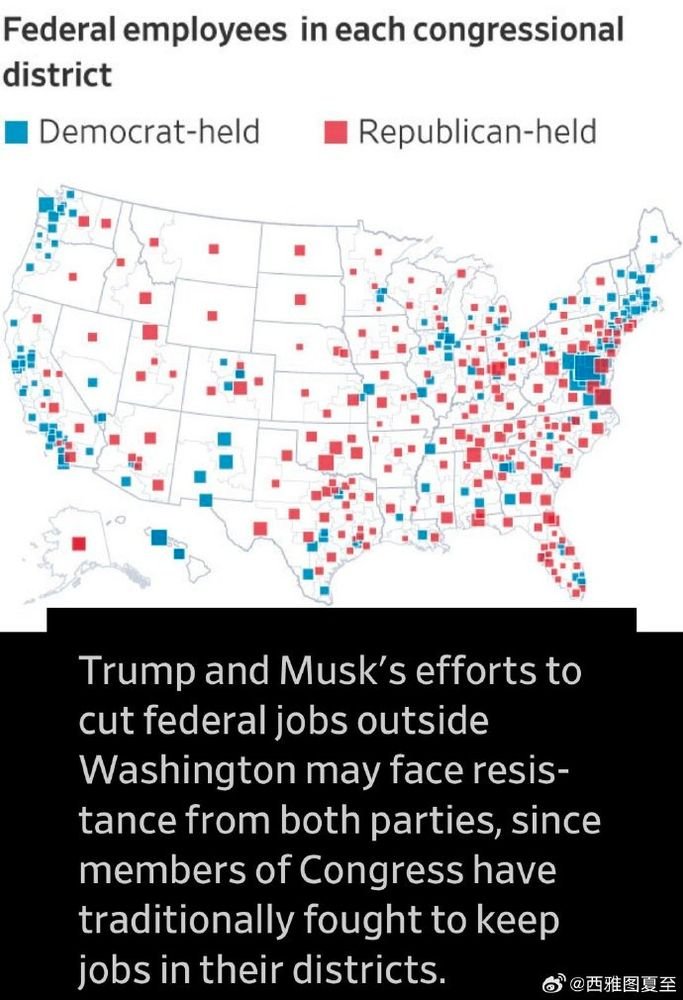 DOGE开掉的联邦雇员遍布各地,共和党的地盘比较穷,地广人稀,所以联邦机构(社保、军事、森林)更多,受影响可能更大一些。
