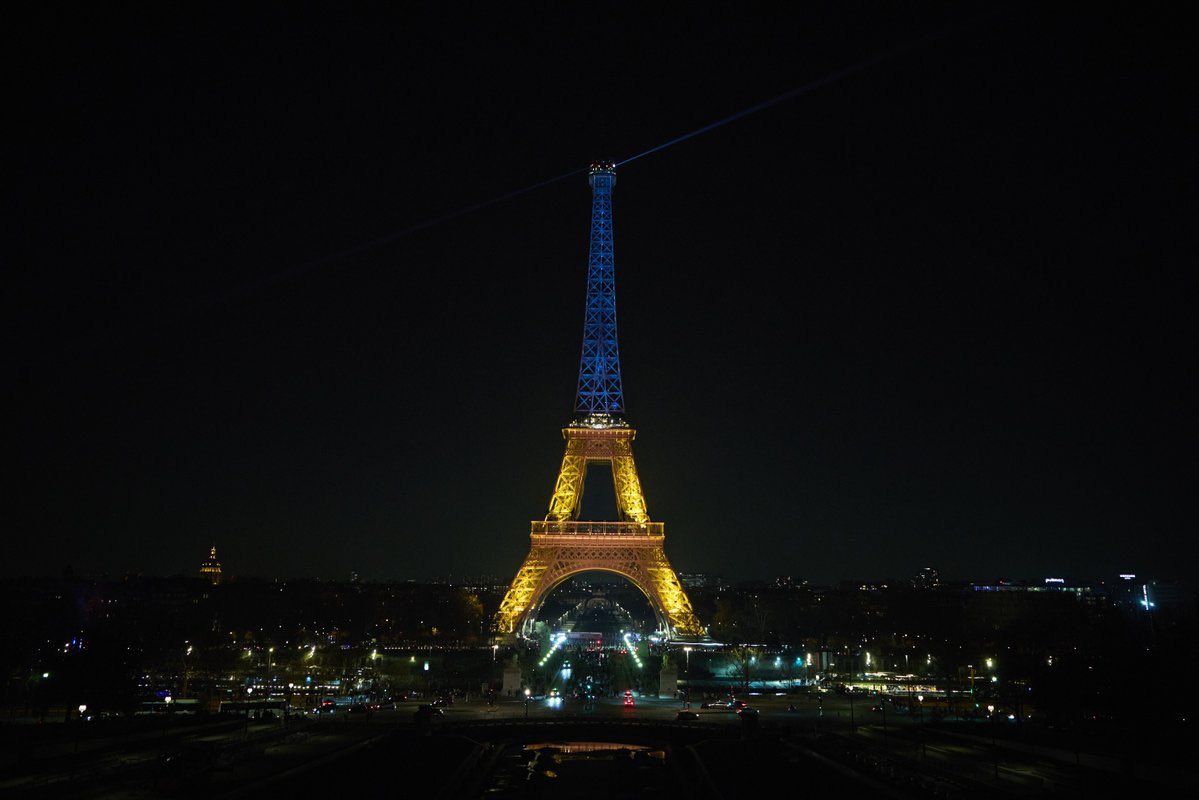 法國埃菲爾鐵塔為澤倫斯基到訪亮歡迎燈