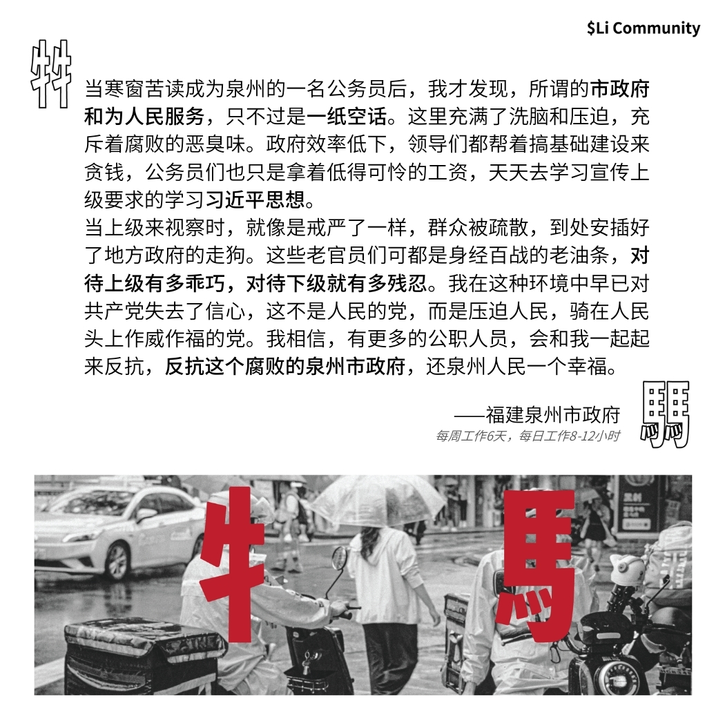 福建泉州市政府 一名每周工作6天的公务员投稿: