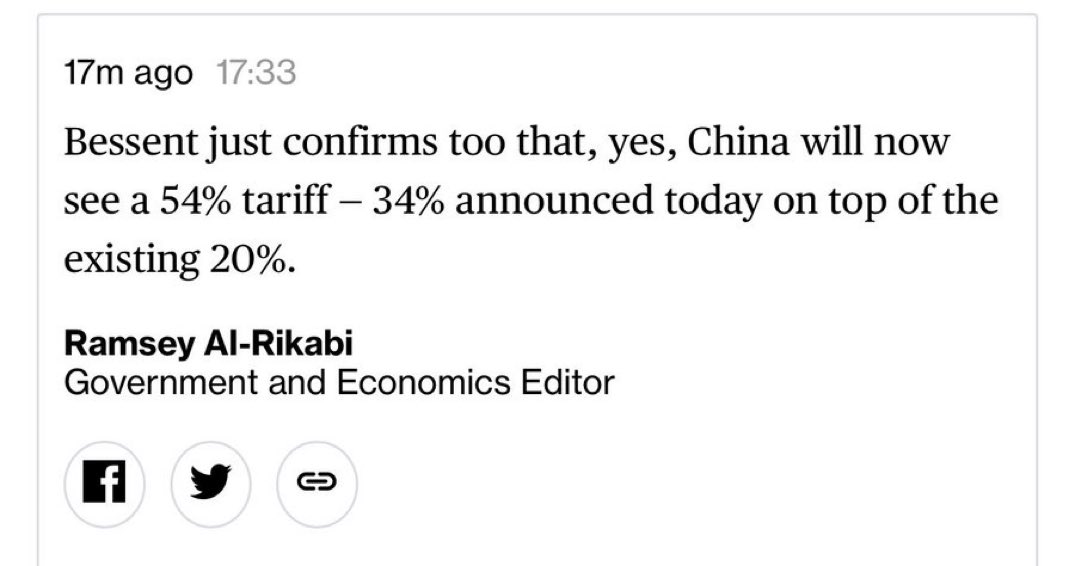 🤣🤣🤣中国关税54%周四开盘恒生指数要崩溃