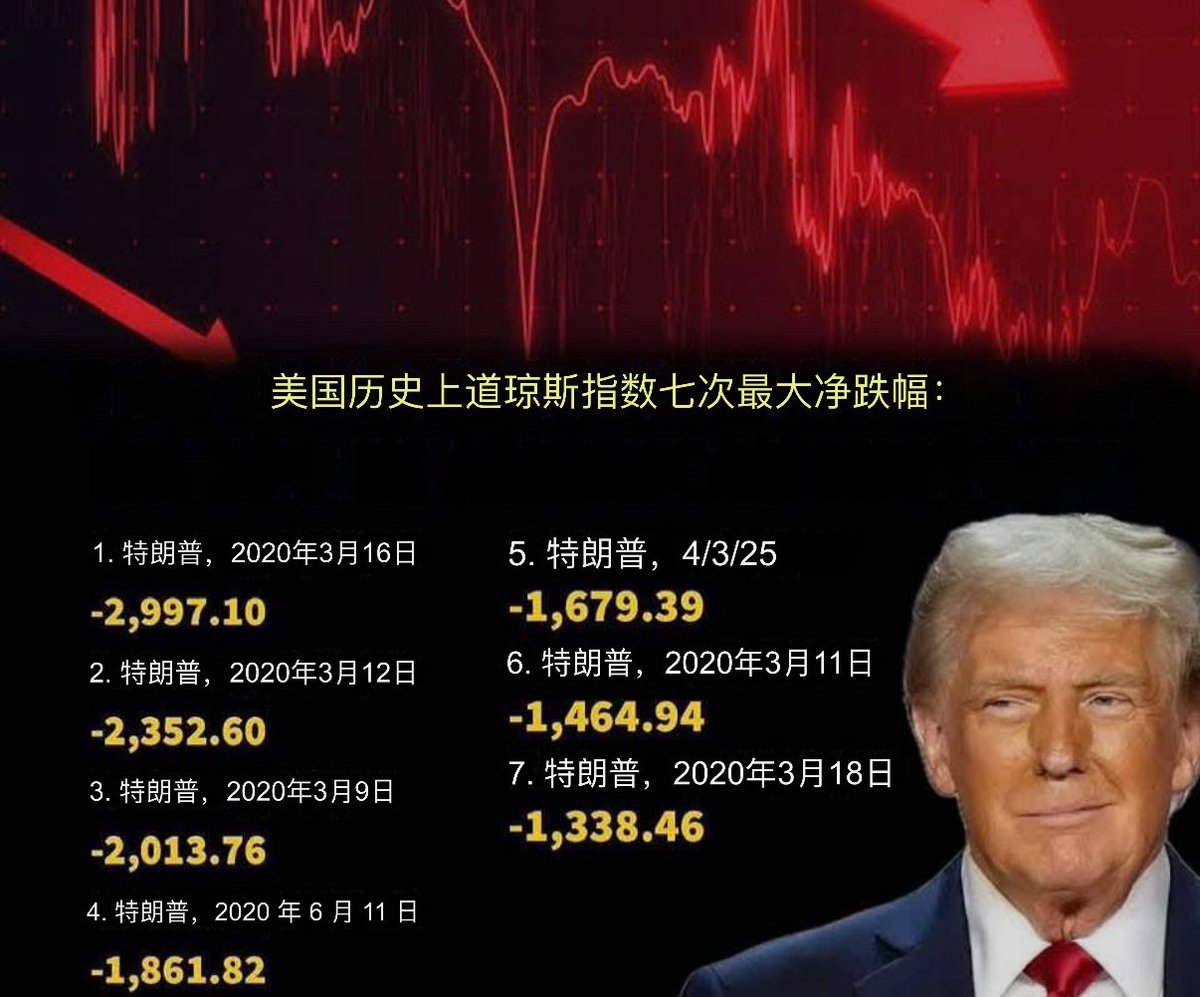 美国历史上七次道琼斯指数最大跌幅都是发生在川普任期。一半的美国人自找的,另一半也跟着倒大霉!