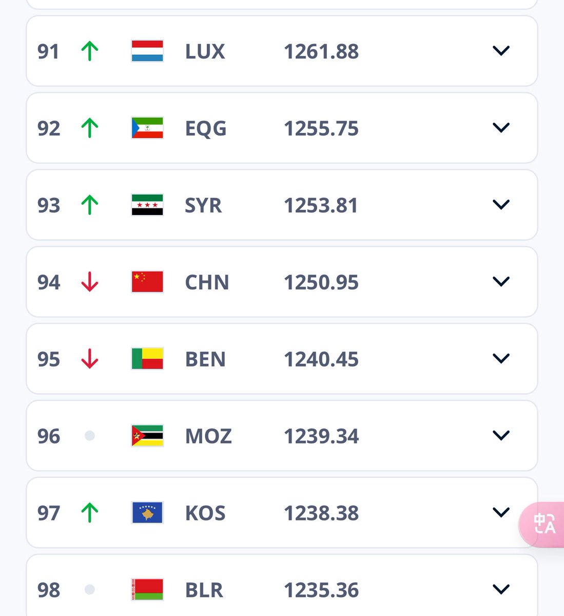 在最新的FIFA足球排行中,国足创下近10年来最差排名下降到世界94名,低于刚刚结束内战的叙利亚🇸🇾