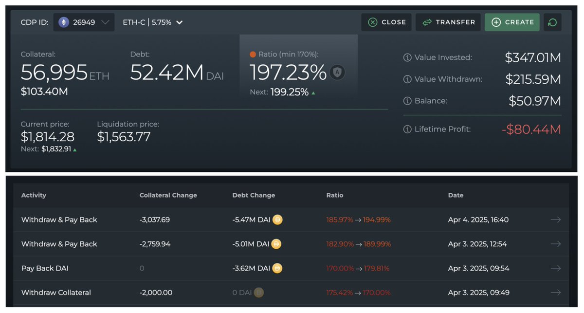不搏命了,原先「64,792 $ETH 濒临清算的巨鲸」将借贷仓位降至 56,995 ETH 了🥹