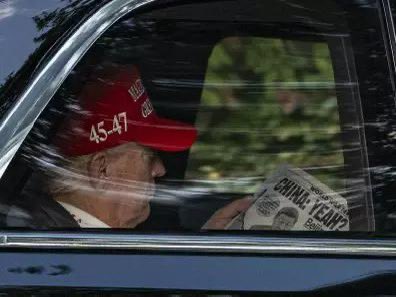 特朗普被拍到手持一份週六的《紐約郵報》,正在閱讀跨頁標題文章:“中國:是嗎?嘗試這些關稅”橫幅下方寫著“世界大戰費用”,文章報導了北京對34%的關稅採取報復性措施,以及道瓊斯指數週五的下跌。