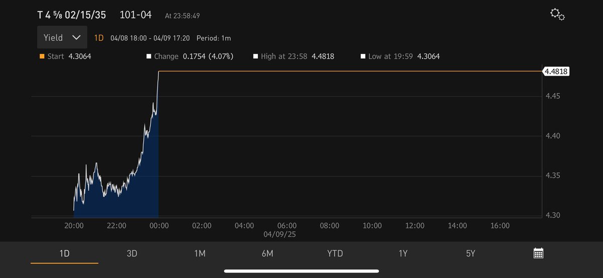 🚨🚨 10 YEAR YIELD 4.50% 🚨🚨Either somebody fucking huge just got blown out, or China is dumping treasuries.Nothing else could be causing this.