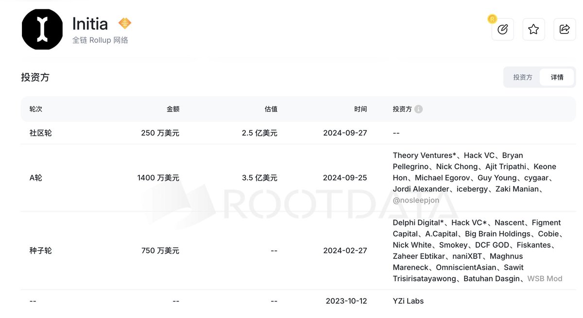 Initia(@initia) 作为全链 Rollup 网络,原来早在 2023.10 就拿到 YZi Labs 的 pre-seed 轮投资了,目前已公开的融资金额为 2400 万美元