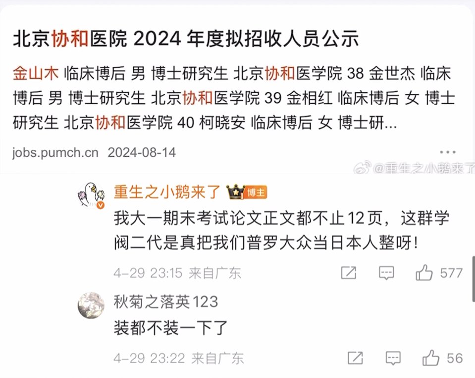 不过,2024年1月16日北京协和医院发布的《2024年临床医学博士后项目拟招收人员公示》中,则出现了金某木的名字。同年8月北京协和医院发布的《2024年度拟招收人员公示》中,再次出现金某木的名字。
