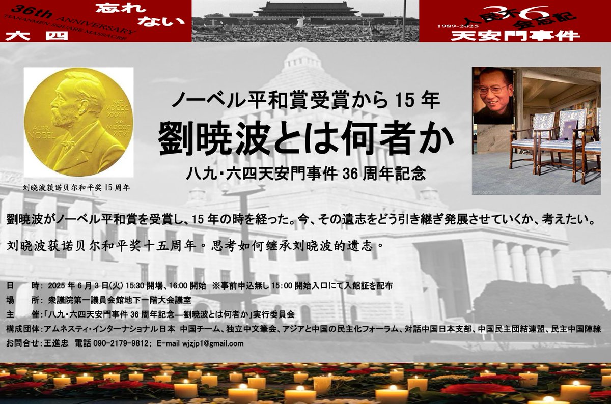 日本國會衆議院會館舉辦“八九・六四”天安門事件36周年記念_「劉曉波獲諾貝爾和平獎十五周年 繼承劉曉波的遺志」專場
