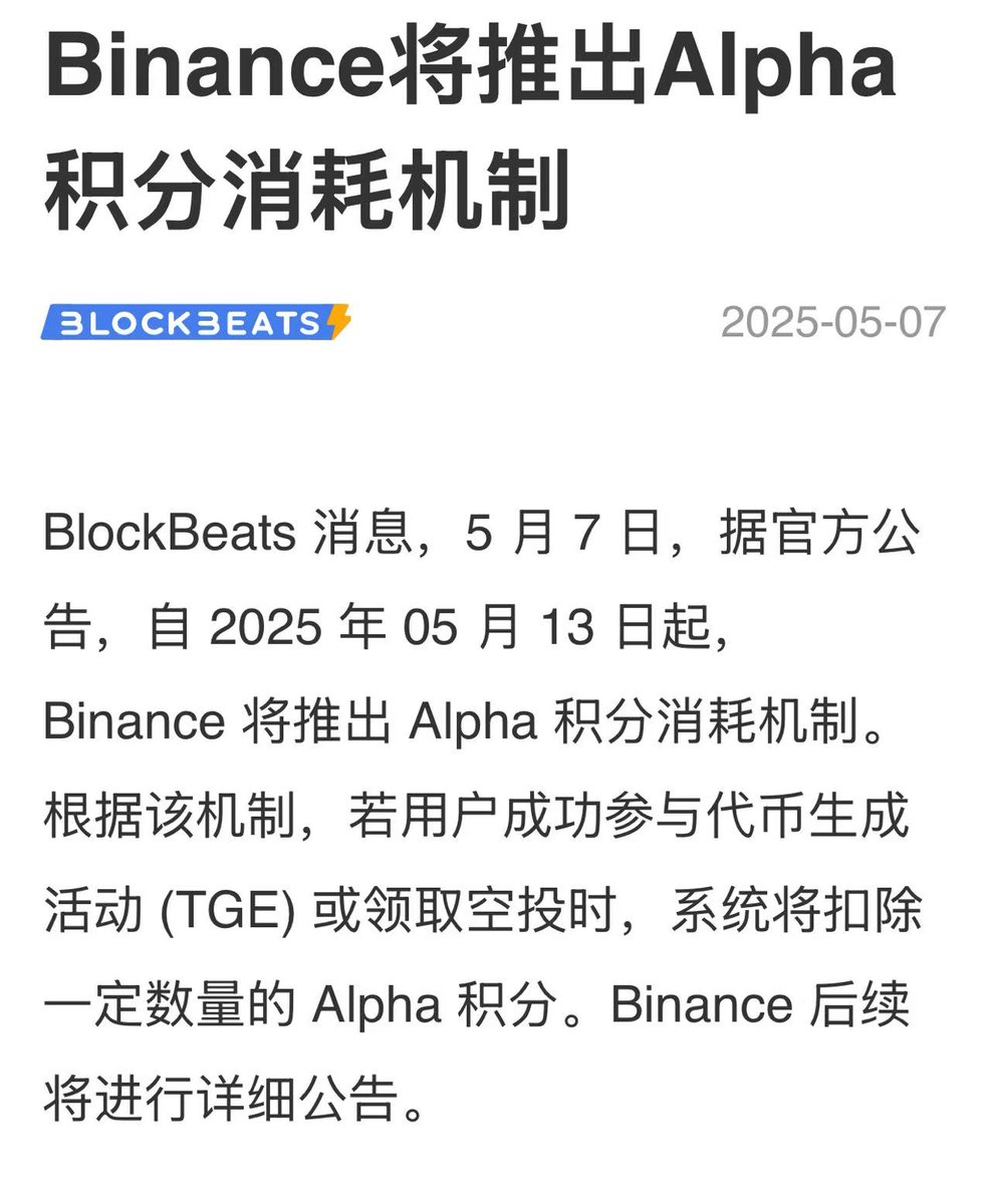在空投进入“高度内卷 + 高频发放”的时代,BN Alpha 的积分机制面临越来越大的挑战,难怪很多人说要玩不下去了。