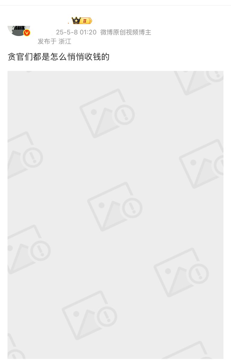 5月8日,一张题为《贪官都是怎么悄悄收钱的》的图片在社交平台传播,该图用低、中、高三层次总结概括了官员贪污的手段。目前该图已被微博屏蔽。遭到此情况的刑辩律师蔡雅奇发文问:“今天我的这条微博怎么成这样了?”一名网友回复:“因为你泄露了天机”