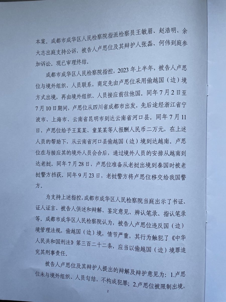 昨天律师会见了思位,上诉程序已到成都市中级法院,征得他的同意,将判决书完整转发。以下是思位关于案件的声明: