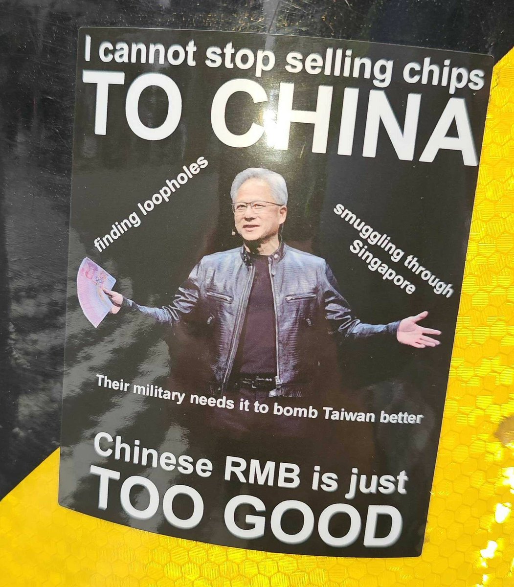A clever sticker seen outside Computex protesting Nvidia's chip sales to China.