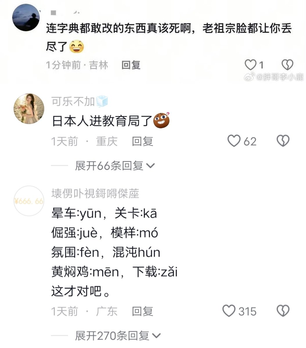 国内平台上,有博主普及一些容易发错音的汉字,被网友质疑:现在最新的发音是这样吗,和我了解的怎么不一样?改成这样,是不是汉奸,是不是日本人派来捣乱的?