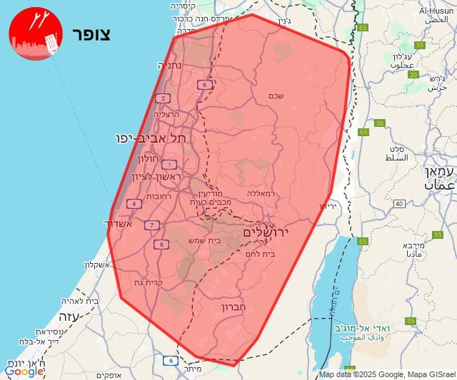 伊朗最新一轮弹道导弹正飞往以色列,预计几分钟后将产生影响的以色列地区
