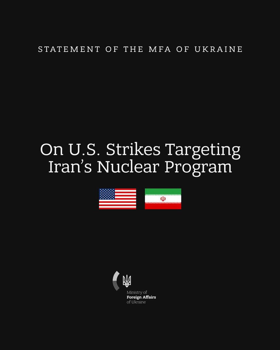 乌克兰外交部发表的声明,支持乌克兰的朋友们应该读一下。我用ChatGPT翻译并且做了一个摘要:“乌克兰强调,必须终止伊朗核计划,以消除其对中东及全球的威胁。多年来的和平努力未能有效遏制伊朗获取核武器的企图,而伊朗政权持续采取破坏性行动,对以色列等国持敌对态度,加剧地区紧张。
