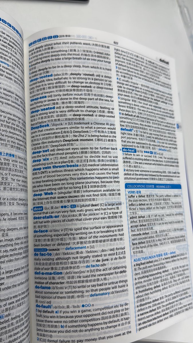 朗文当代第七版到手。六版的高频 9000 词予以保留,但具体的前 3000 词目改为 APP 展示,以前官网的 9000 词也一并挪到 APP。增加了 CEFR 等级,但缺少牛津高阶里面的 OPAL 等级。彩插比六版英文版少不少,Collactions、Thesaurus、Grammar 等模块予以保留,新词增加不多。增加了义务教育和高中英语词汇的星标,这点好评。