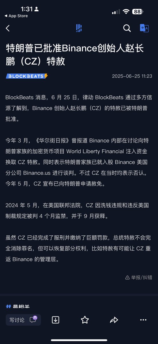 刚写完长文没多久就看到这个好消息,Trump 特赦了 ,意味着大表哥很可能有机会重返币安管理层,名正言顺的进一步布局。长文里猜测的 上市可能性更大了,毕竟Trump是个商人,你懂的😉😉😉
