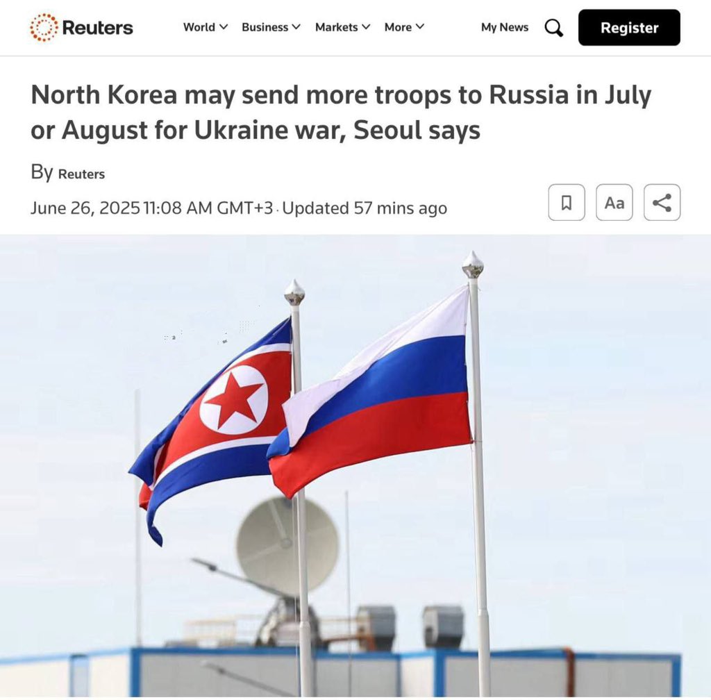朝鮮可能在未來兩個月內向俄羅斯增派軍隊,參與與烏克蘭的戰爭——路透社有證據表明,平壤繼續向莫斯科提供炮彈,以換取其在衛星發射和導彈制導系統方面的技術建議。