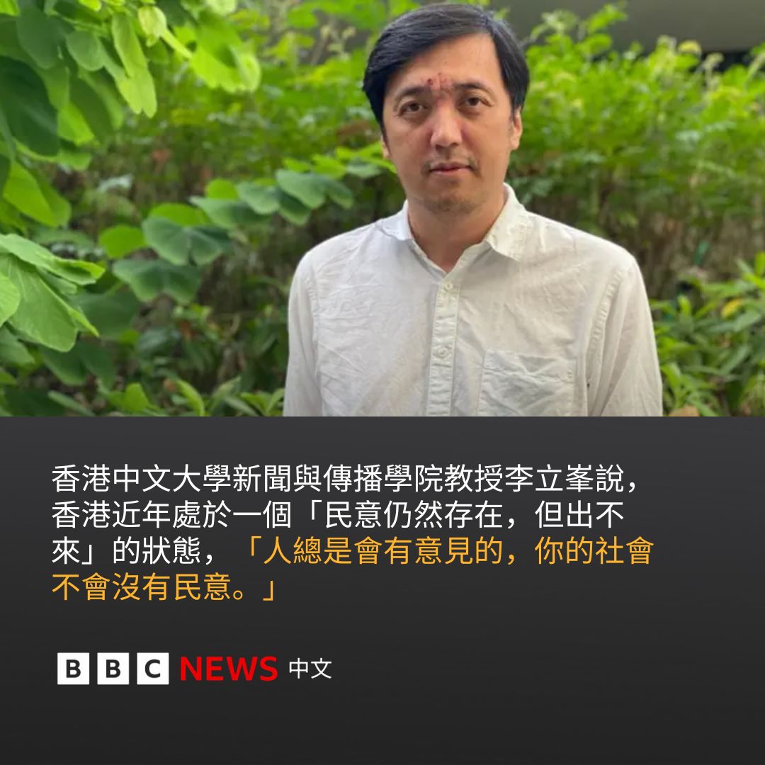 “人总是会有意见的,你的社会不会没有民意,”香港中文大学新闻与传播学院教授李立峯表示,香港目前处于一种“民意仍然存在,但无法表达”的状态。