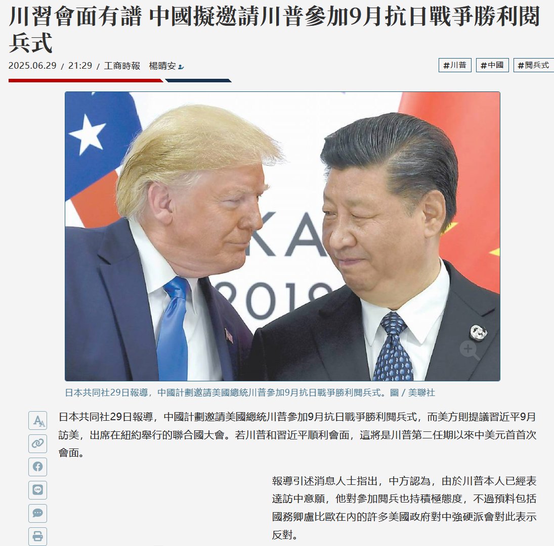 6月29日,日本共同社消息称中国拟邀请美国总统特朗普参加9月3日的阅兵。