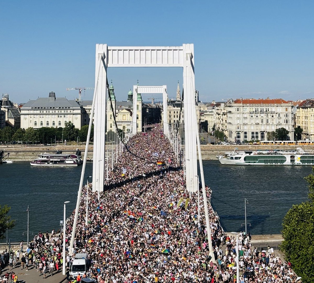 🚨布达佩斯今天举行了史上规模最大的游行。抗议总理维克托·欧尔班的政策,包括限制集会自由的权利游行队伍绵延至少3公里,吸引了数万甚至数十万人参加。政府曾试图禁止此次活动,并为新兴政党Tisza党设下了陷阱,但现在看来适得其反。