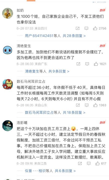 6月28日,多益网络宣布,悬赏10万元寻求对付摆烂员工的方案。网友们纷纷表示,只要尊重劳动法,善待员工,多加工资和福利,就可以阻止员工摆烂。