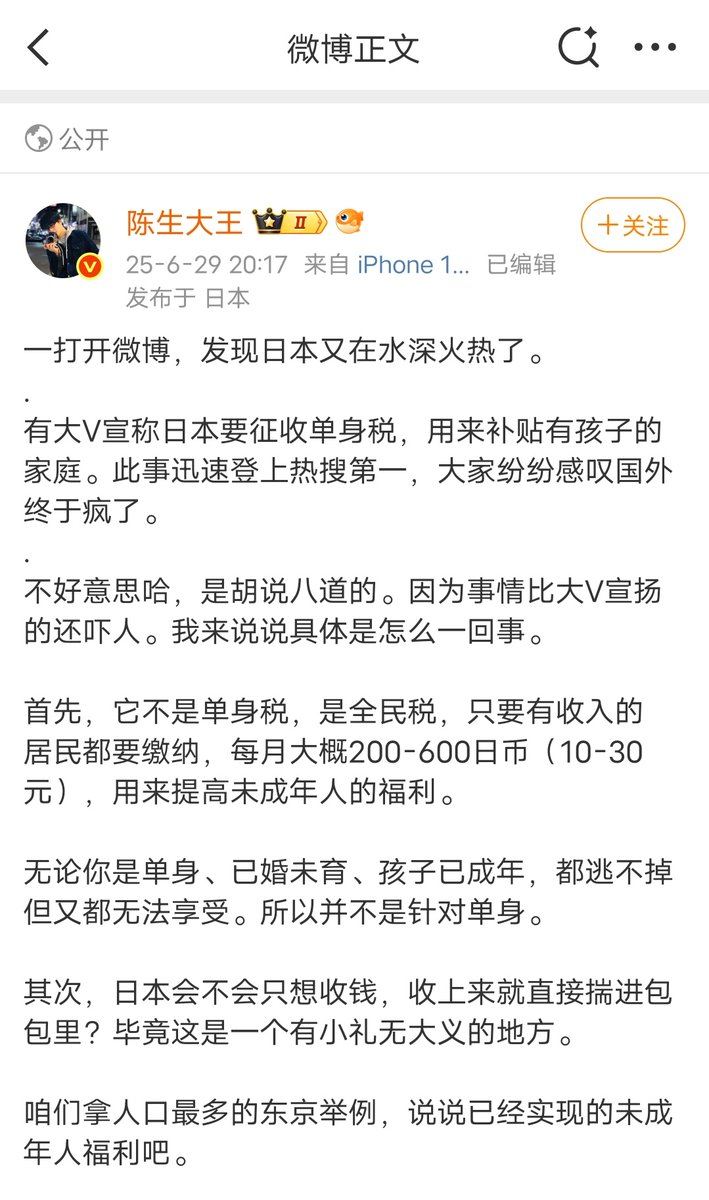 一名博主站出来澄清日本的所谓“单身税”究竟是怎么回事——