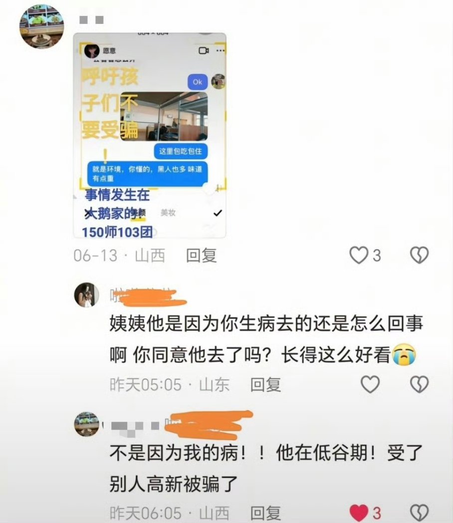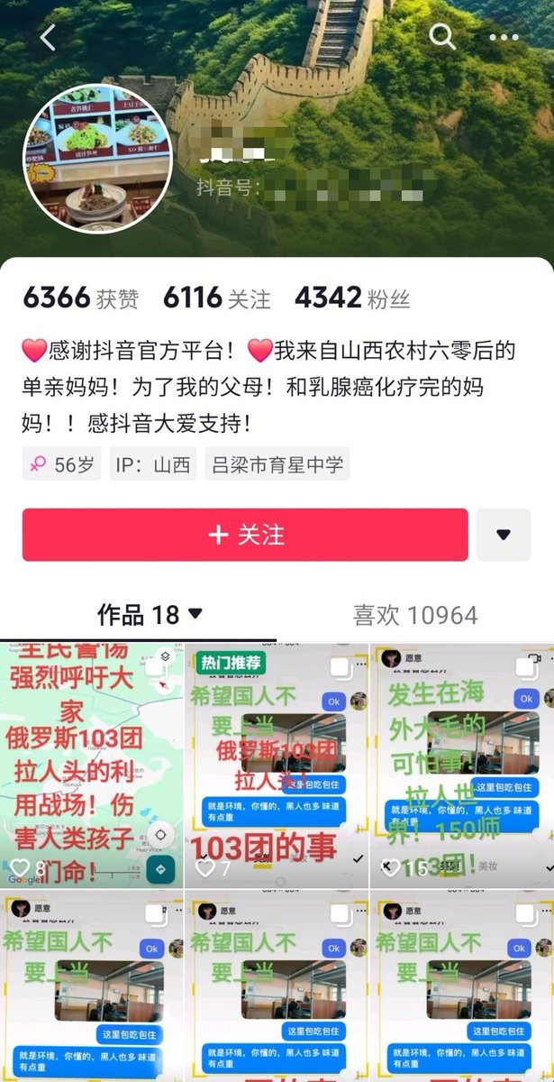 网友分享:这种人是真的可恶,家里老母亲当单亲妈妈把他拉扯这么大,外婆还得了乳腺癌,他丝毫不珍惜家人,跑去俄罗斯当雇佣兵助纣为虐,还扯什么“给母亲治病”这种冠冕堂皇的理由,其实就是为了自己。结果现在失联了,害得国内的妈妈哭干眼泪。