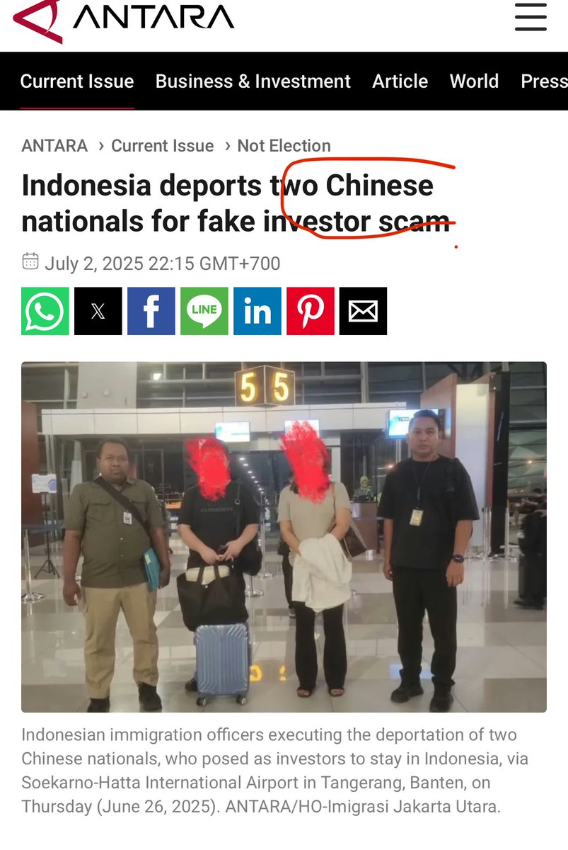 印尼驱逐两名中国骗子投资者印尼北雅加达一级移民办公室以假冒投资者身份活动为由,驱逐了两名中国公民ZM和ZY。