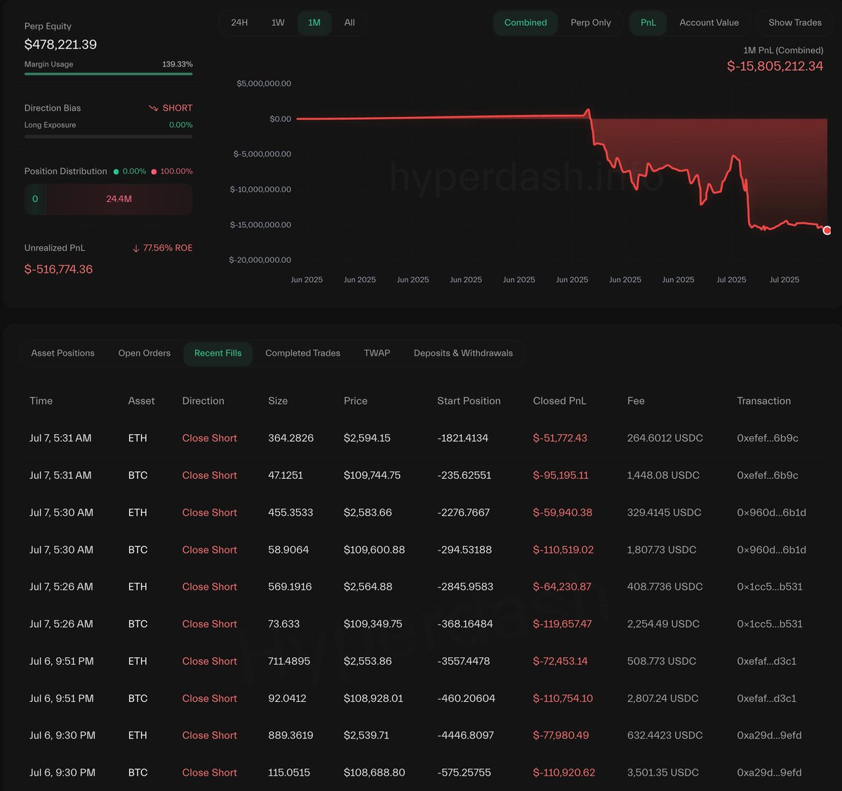 「内幕老哥」似乎已经摆烂了😷 06.25 开始的双开空单已累计亏损 1581 万美元昨晚 21:30 到今早 05:31 他的空单再次被清算 2989.67 ETH 和 751.04 BTC,亏损 92.5 万美元传送门本文由 #Gate 大门交易所 | 赞助